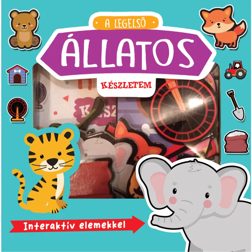 A Legelső állatos készletem egy különleges interaktív foglalkoztató könyv, amely játékosan ismerteti meg a gyerekeket az állatok világával. A könyvben három különböző élőhely állatai jelennek meg: a házi kedvencek, a tanyán élő állatok és a vadon lakói. A készlet mozgatható elemeket tartalmaz, amelyekkel a gyerekek aktívan részt vehetnek a tanulásban, miközben elhelyezik az állatokat a megfelelő helyükön.