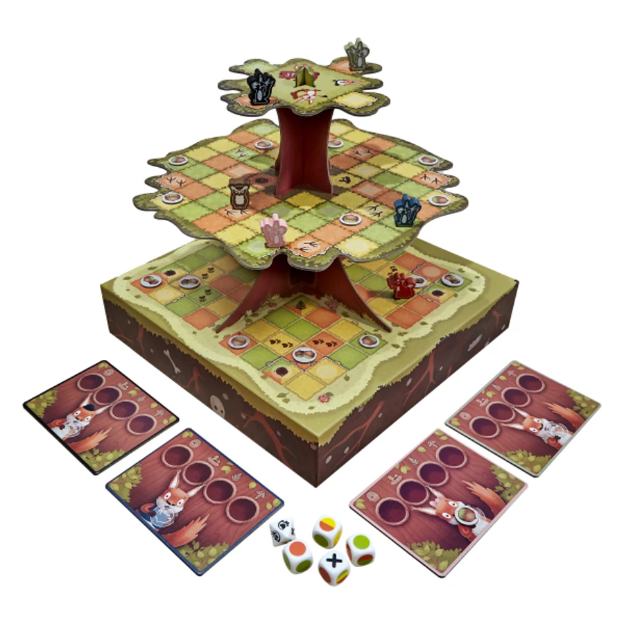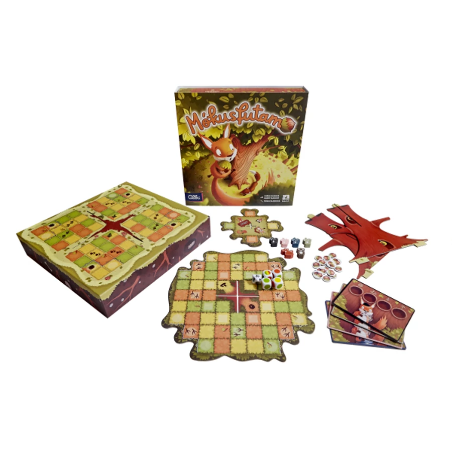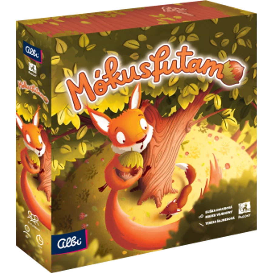 Ebben a látványos társasban egy hatalmas mogyorófán kergetőzünk mókusokként. A feladatunk, hogy elegendő mogyoróval töltsük fel télire az éléskamránkat, emiatt egymás orra elől próbáljuk elhalászni a legnagyobb szemeket. A színes kockákkal dobva minél ügyesebben kell megterveznünk az utunkat, hogy a lehető leggyorsabban érjünk a finom falatokhoz és a rejtekhelyekhez. De sajnos a róka ott ólálkodik a fa körül, a bagoly pedig a lombkoronát tartja szemmel – ők arra várnak, hogy ránk ijesszenek, és visszakergessenek bennünket a fa tetejére. Ilyenkor ijedtünkben az épp megszerzett mogyorót is elejtjük, és kereshetünk újabbat! Vajon kinek sikerül elsőként minden rejtekhelyet megtölteni?