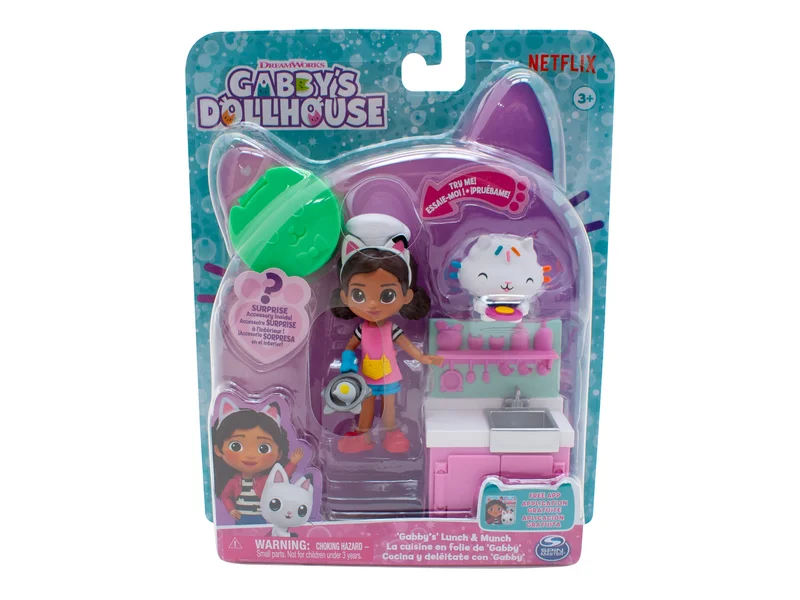 Cuki cicák, furfangos játékok és színpompás varázslat! Tarts a macskarajongó Gabival és hű pajtásával, Pandival és légy részese az izgalmas kalandoknak. Főzz igazi remekműveket Gabi Babaháza Szakács Gabi játékszettel. Ez a szórakoztató játékkészlet tartalmaz egy 10,2 cm-es Gabi gyűjthető figurát, Cakey cica figurát, egy konyhai mosogató szekrényt, valamint egy Babaház szállító dobozt, benne egy meglepetés konyhai kiegészítővel. A Babaház szállító doboz belsejében QR-kódot találsz – olvasd be, hogy exkluzív jutalmat nyerj az ingyenes Gabby's Dollhouse alkalmazásban (iOS és Android rendszeren). A Gabi Babaháza játékszettek tele vannak meglepetésekkel, és életre keltik a játék izgalmát. Ez a gyerekjáték tökéletes ajándék 3 éves és annál idősebb gyerekeknek.