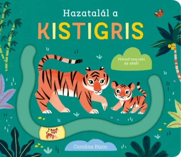 Vedd a pici kezedbe a könyvet, és a mozgatható csúszkával mutasd meg a hazavezető utat az állatkölyköknek a dzsungelben!