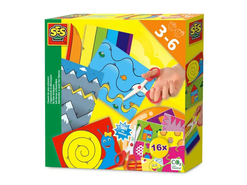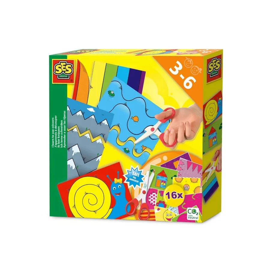 Gyakorold az ollóval vágást színes rajzokon! A SES Már tudok ollóval vágni készletben 16 különböző képet, valamint biztonsági ollót találsz, amikkel ki tudod vágni a rajzokon lévő figurákat. A vonalakat az olló jellel jelölt szaggatott vonalak mentén kell elvágni, a feladatok között találsz, könnyebb és nehezebb rajzokat is. A biztonsági ollóval csak a papírt tudod elvágni, a ruhádat, vagy a kezedet, és a hajadat sem fogod vele tönkretenni. A Már tudok ollóval vágni készlet csomagolási méretei: 20 x 4 x 20 cm.